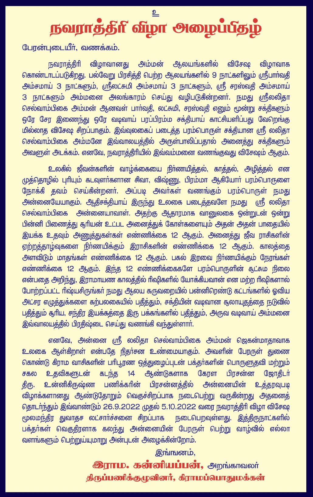 நவராத்திரி விழா அழைப்பிதழ் - 2022